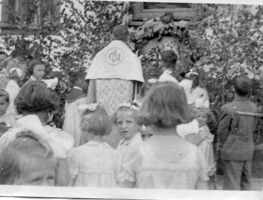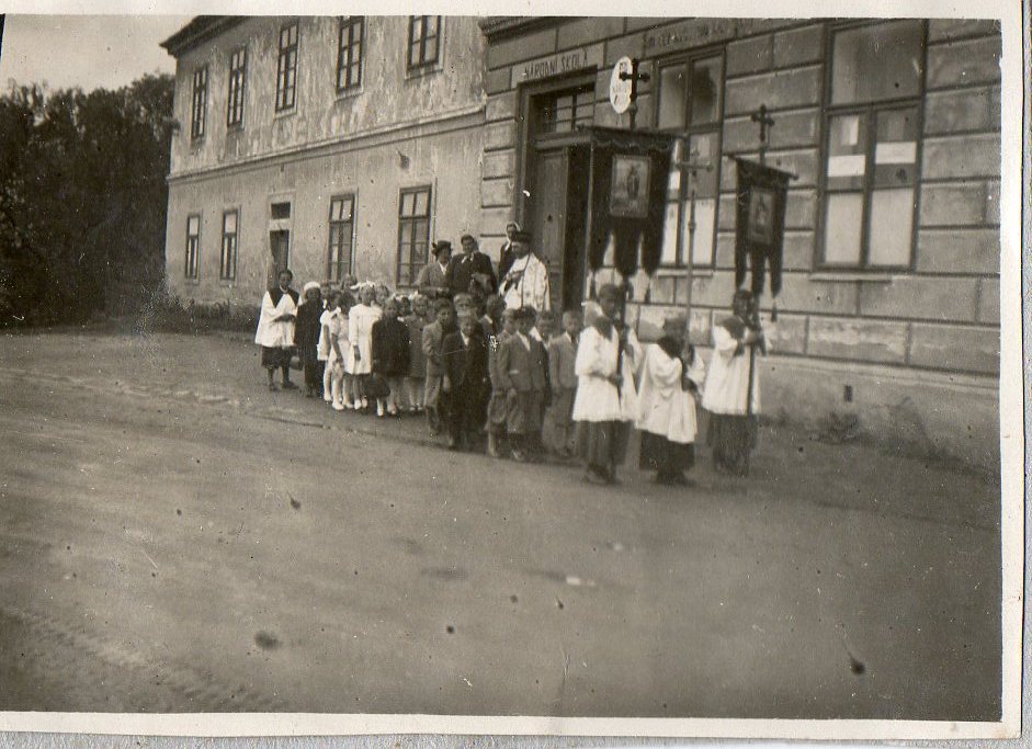 Svátek Božího těla 1951 u školy v Tochovicích